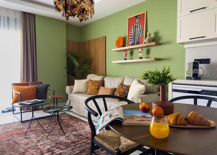 A 80 m²-es Qoople Elite 4 Elize 29 Apartment Boho Style In Premium Location Alanya olyan turisztikai látványosságok közelében található, mint a 6 percnyi sétára található Suleymaniye Camii. Az 1 hálószobás apartman szaunával és beltéri medencével felszerelt, ami még kellemesebb hangulatot teremt a vendégek számára.